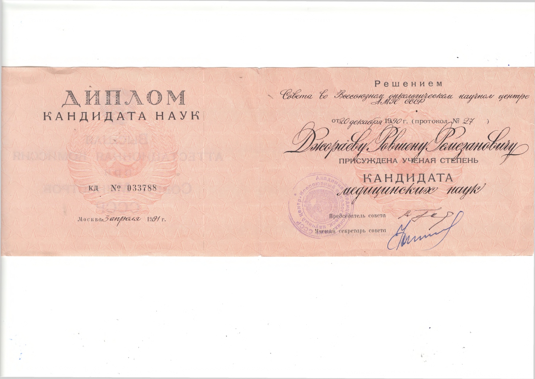 1990-njy ýylda Moskwada onkologiýa ylmy merkezinde kandidatlyk dissertasiýasyny gorady we medisina ylymlarynyň kandidaty diýen ylmy derejä eýe boldy. 35 ýyldan gowrak tejribesi bilen näsaglara maslahat berip gelýär we lukmançylykda täze çykýan usullary çuňňur öwrenýär.